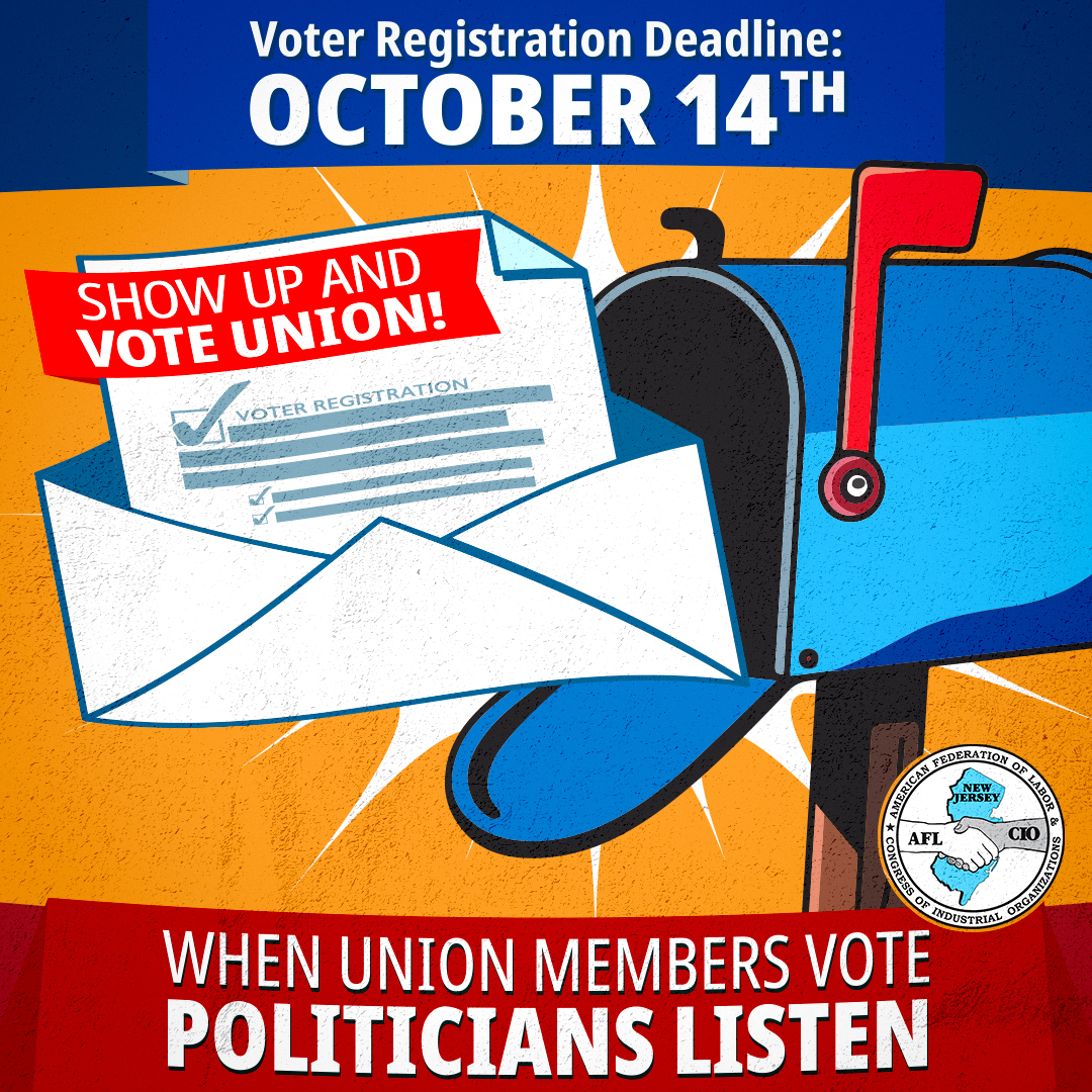 Stand together, register to vote, and vote by mail. Keep New Jersey union strong.